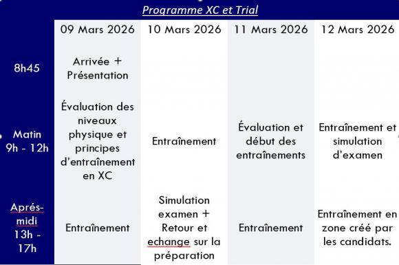 Objectif XCO : Perfectionner sa technique en XCO et être en mesure, à l’issue de la formation, d’avoir assez de connaissances et de séances types pour s’entraîner de manière autonome dans cette discipline afin d’optimiser ses chances de réussite au TEP.